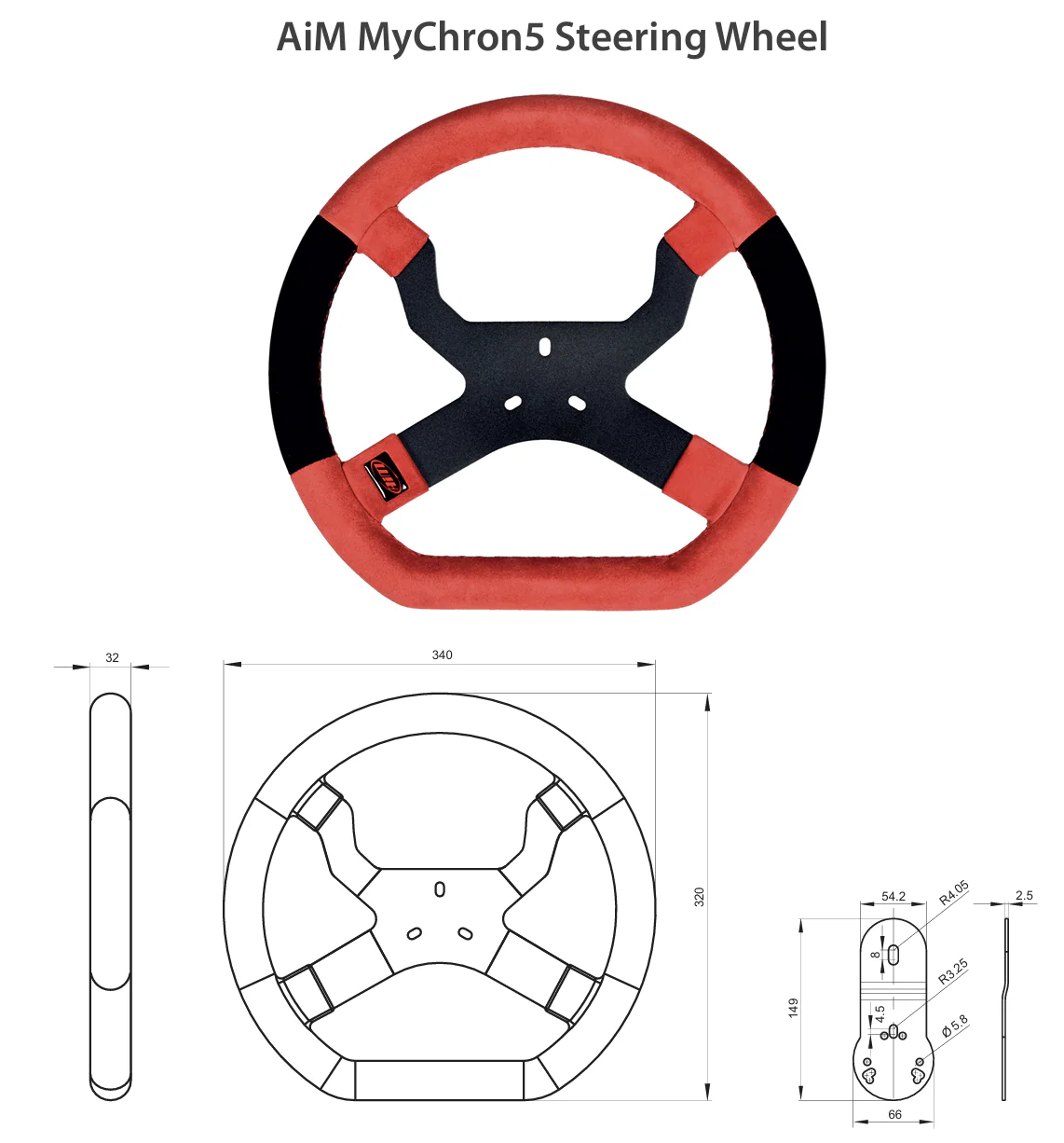 The ideal complement for your newest MyChron5, light-weight and ergonomical, it allows you to put your MyChron5 in the best position: right in front of you. You can fully access the power of the MyChron5, viewing your data at a glance while maintaining optimum driving precision. Designed with a flat bottom and curved top, the AiM MyChron5 Steering Wheel is made of an anodized aluminum frame with Alcantara grips and durable Nabuk covering on the sides.